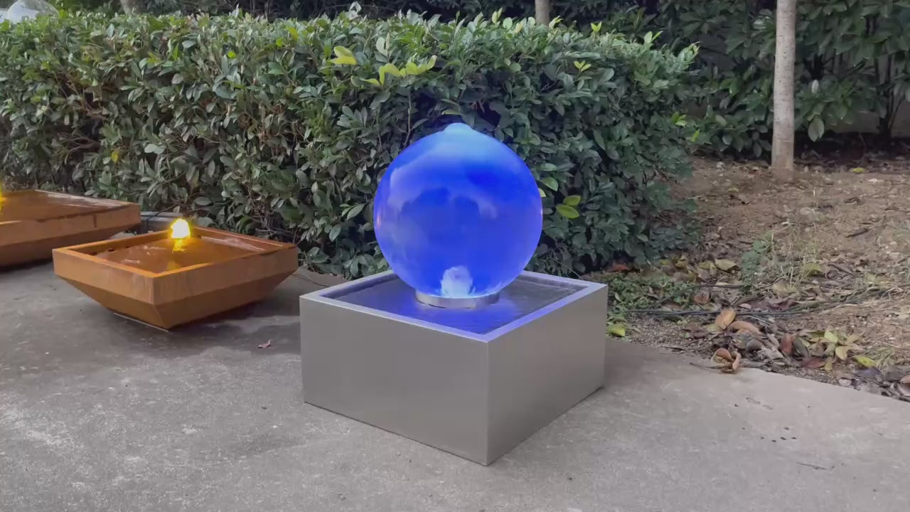 This 24-inch acrylic sphere comes as a full, ready-to-install fountain kit.
